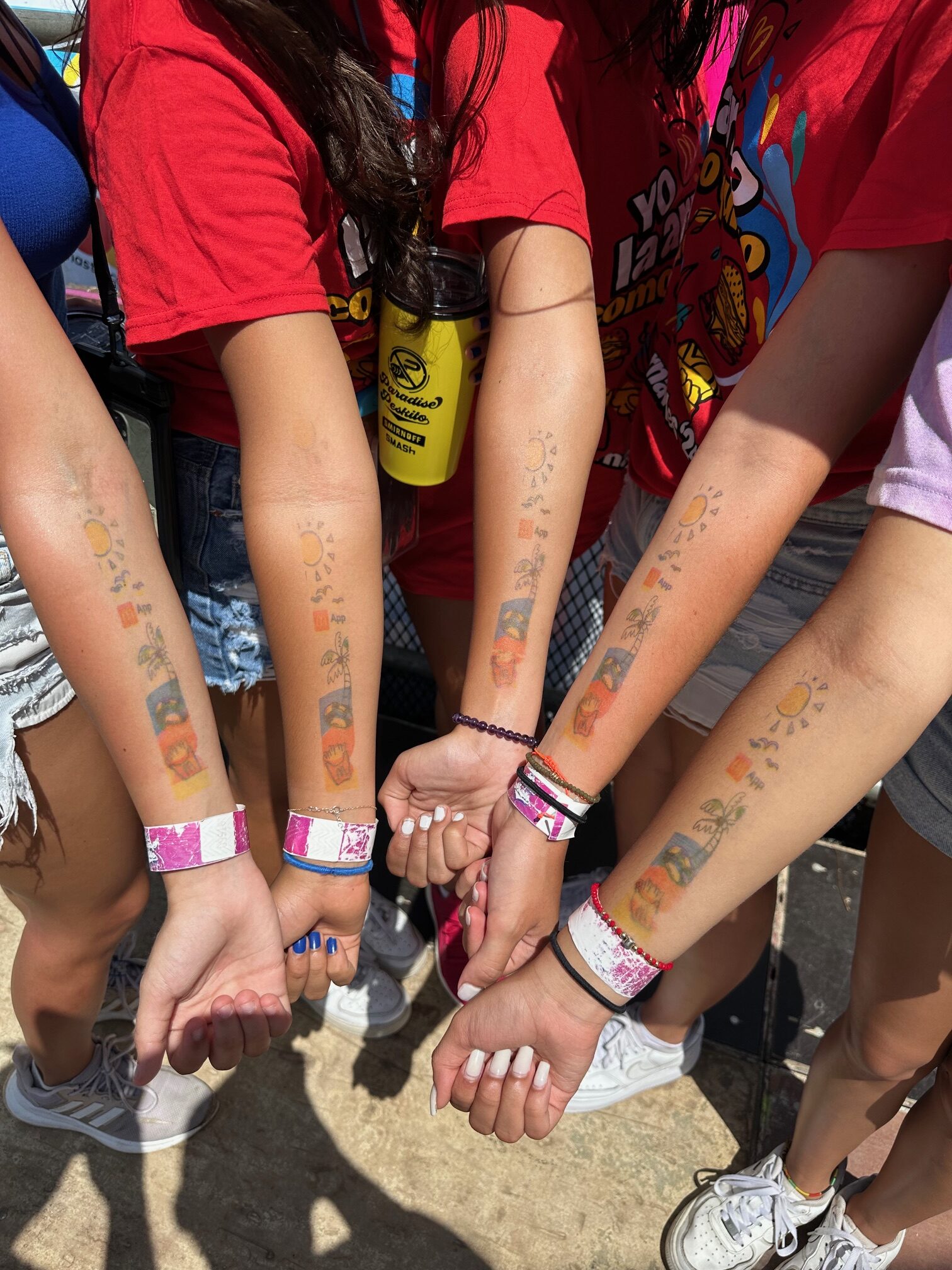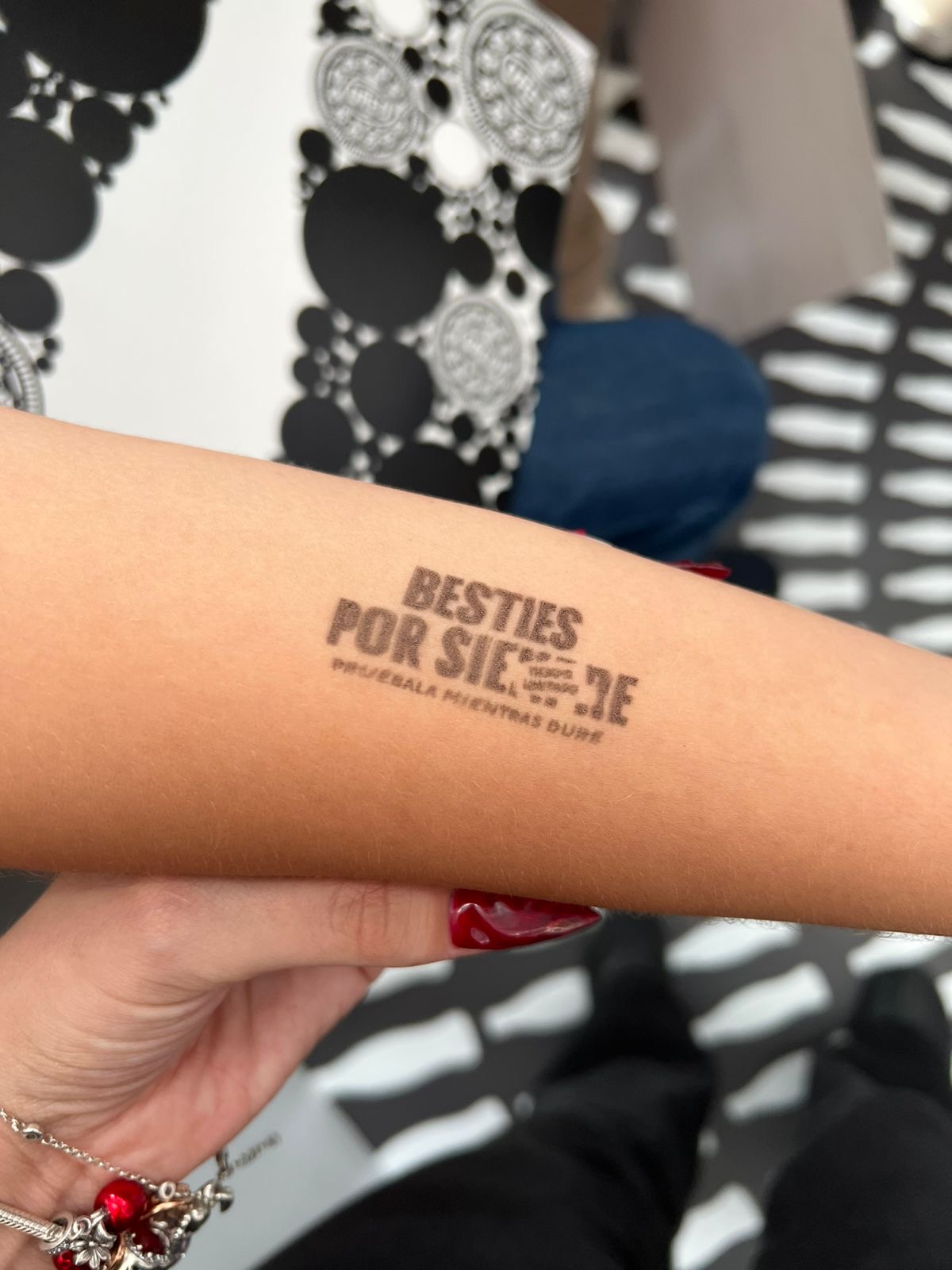 - Aplicar el tatuaje: Una vez que hayas elegido el diseño, simplemente te colocamos el dispositivo sobre la piel y presionamos el botón para imprimir. El tatuaje aparece al instante en tu piel.